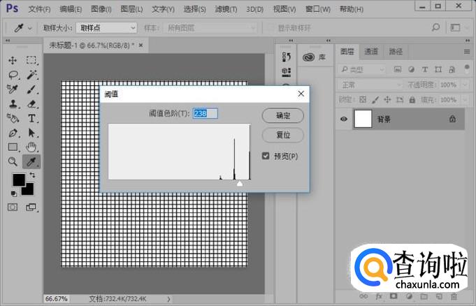下面我们执行图像-调整-阈值操作,参数设置如图所示。这样可以让线条更明显一些。
