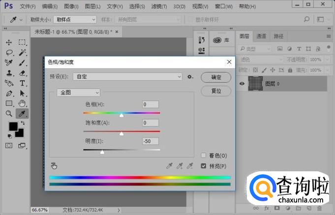 接下来我们使用色相/饱和度来调节图层;勾选着色和不勾线,着色效果是不同的,大家可以试一下。