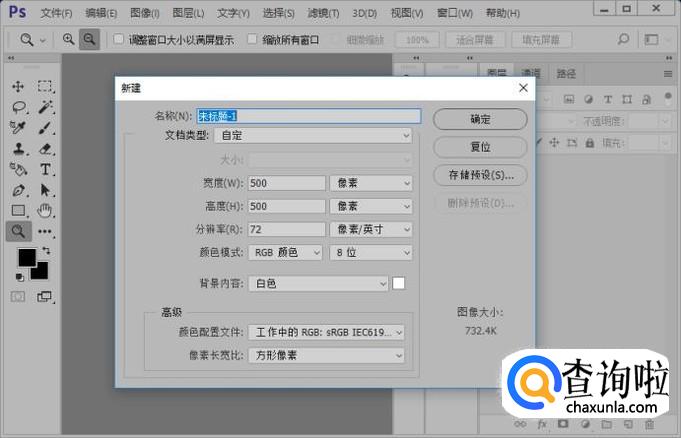 然后我们使用快捷键CTRL加n新建一个图层。新建图层的参数如图所示。