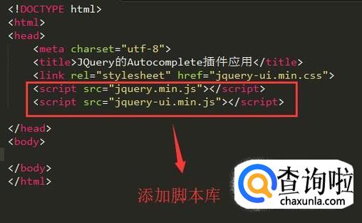 接下来在script中添加jquery的脚本库文本,如下图所示,智能提示的相关功能都在jquery-ui.min.js文件中