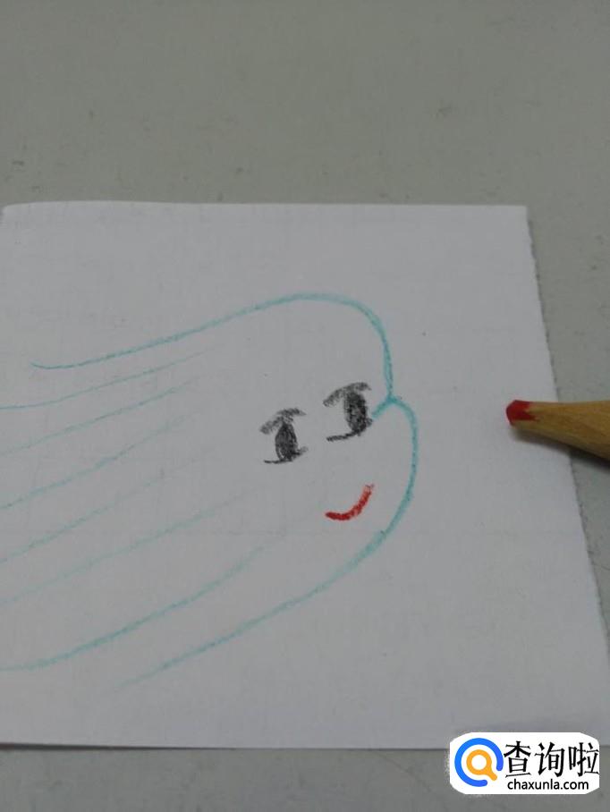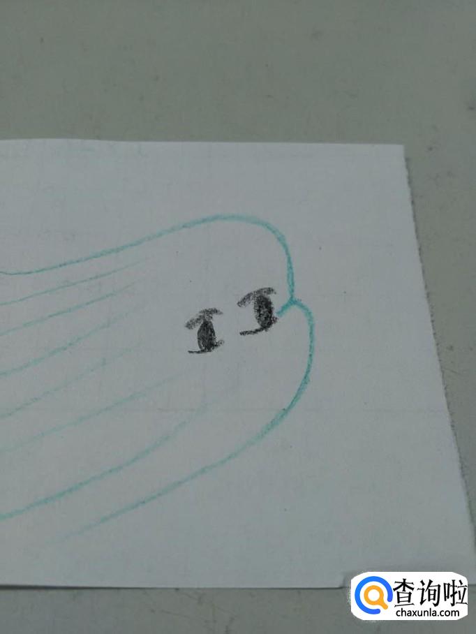 再用蓝笔在左侧画一些细细的线,表示风的头发。