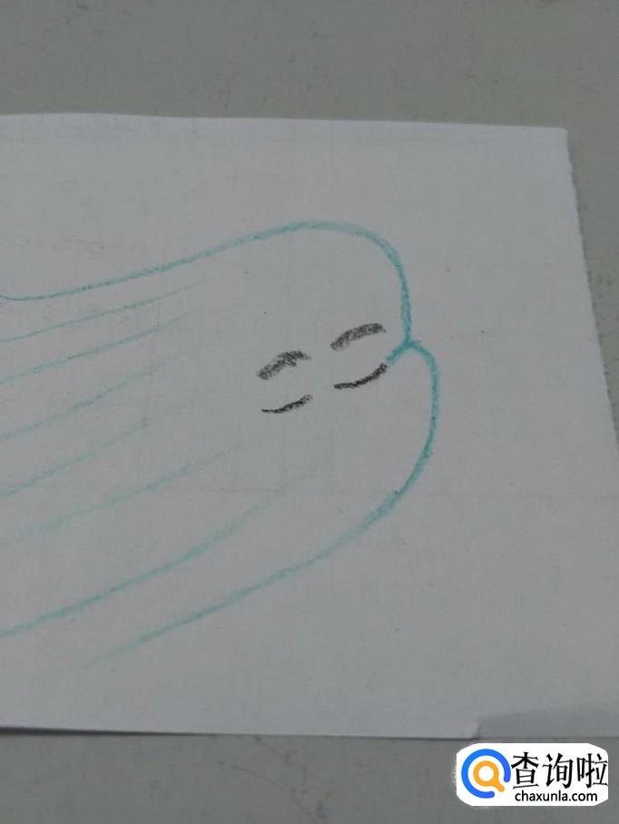 在眼皮中间画两个椭圆形,表示眼珠。