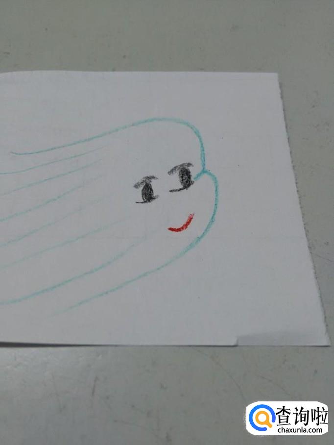 再用红笔在眼睛下面画一条弯弯的弧线,表示嘴,风就画完了。