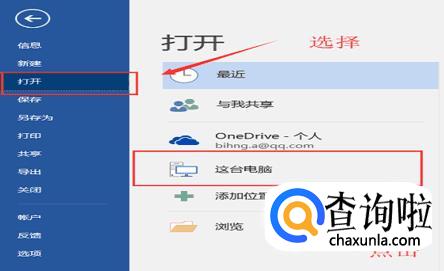 找到左方的选项中点击【打开】,然后点击右边页面的【这台电脑】。