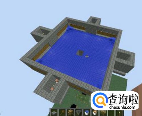接着在一边的四个方块外建一个平台,大小可以自定义。放好的门上要放一圈实体方块,再在上面放一圈半砖防止刷怪。村民屋子和流体区要保证亮度。不然会导致僵尸围城。