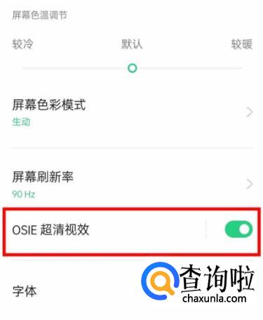 下拉,找到并开启【OSIE超清视效】右侧的开关即可。