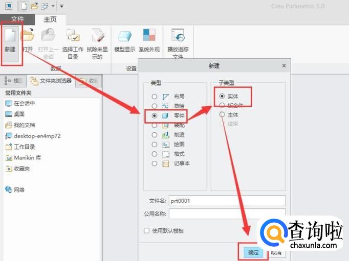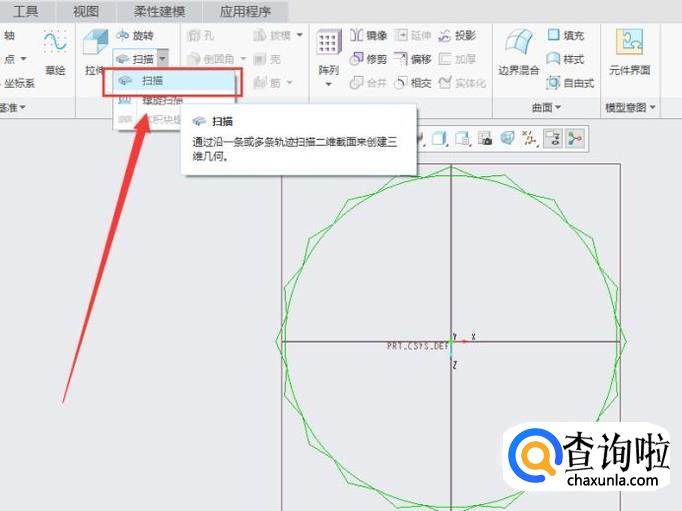 点击“草绘”,创建参考的中心线,创建扫描剖面,点击“确定”即可,如图所示。