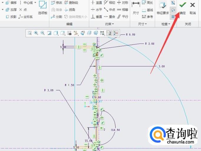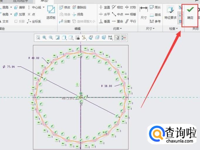 将三角星形约束到坐标原点,然后内圆半径修改为38,然后绘制一个半径37.98的圆,然后点击“确定”,如图所示。