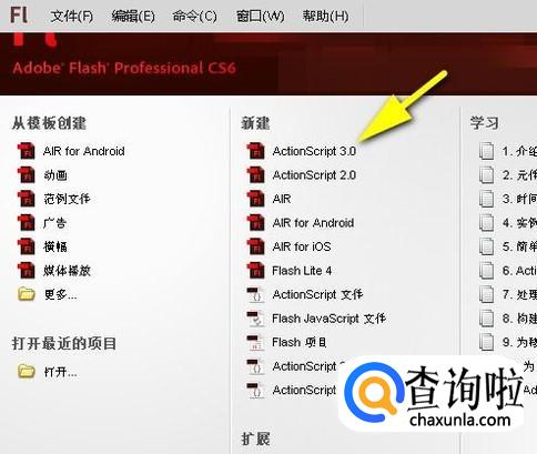 首先,我们启动FLASH软件,打开界面,再新建文档。