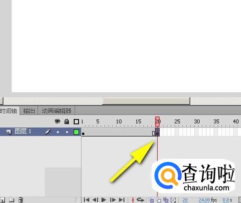 接着,鼠标在时间轴的第20帧这里点击一下,再按下键盘的F6,执行插入帧命令。