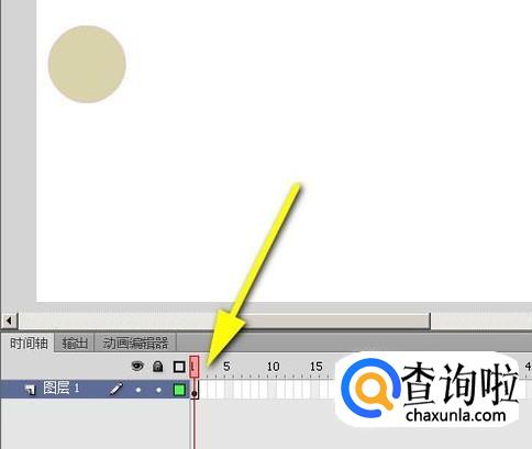 下面,举例演示其制作方法。比如,制作一个圆形从左到右移动的形状补间动画。