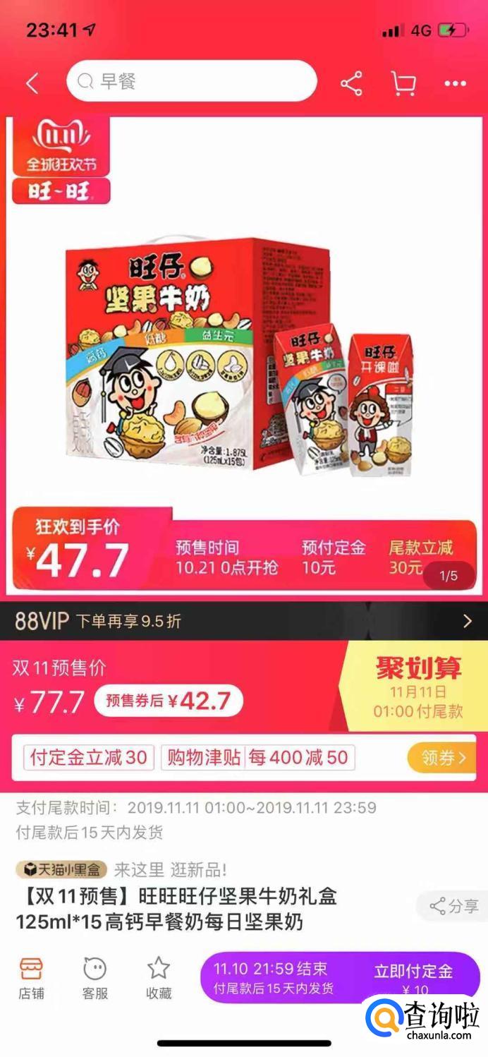 首先打开淘宝选择你想购买的一个商品,确认好定金尾款时间就可以点击付定金了。