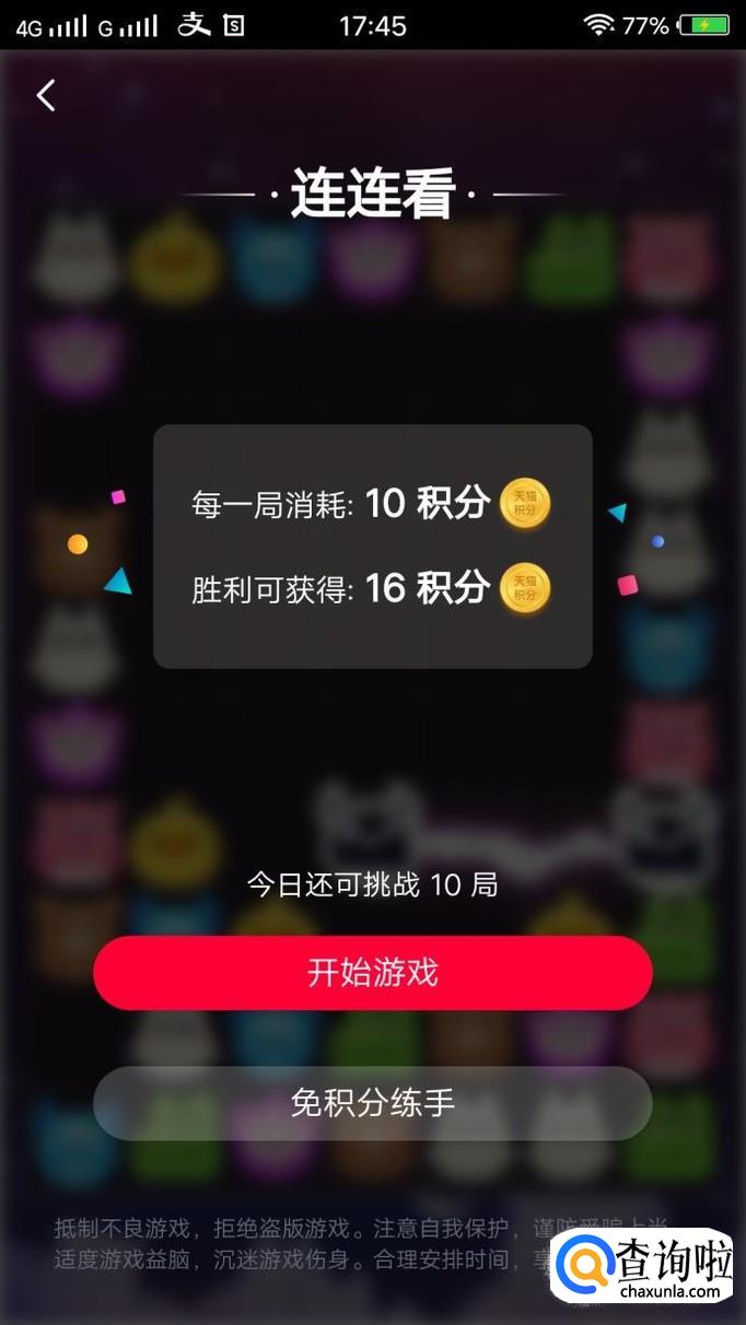可以看到很多游戏,您可以选择比较拿手的游戏进去玩,大部分游戏规则是赢了就可以赚积分。比如“连连看”的规则如下图。