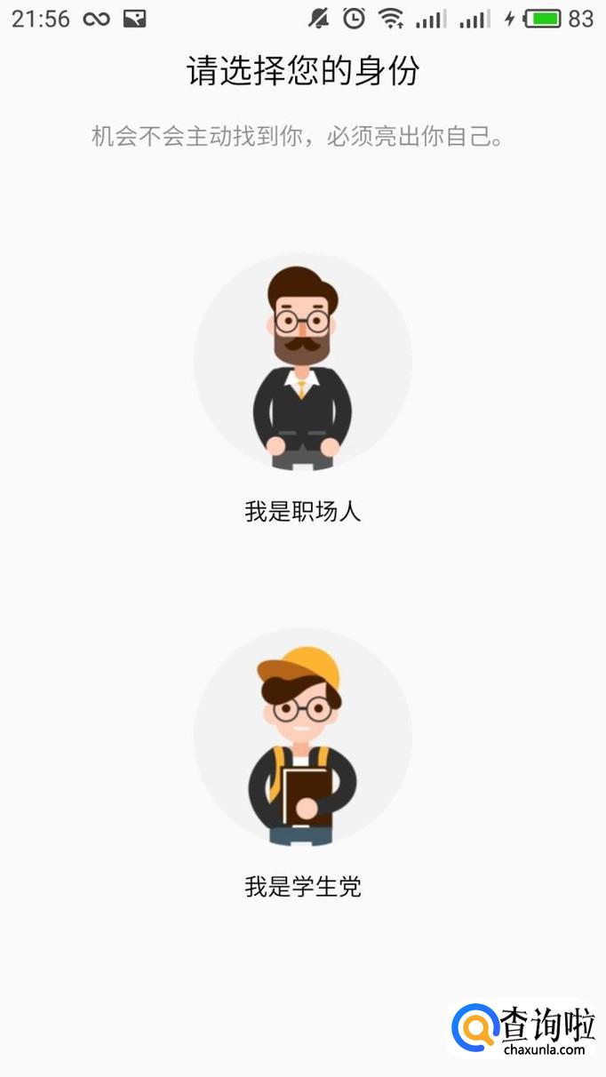 在打开招聘以后他有一个选项是问你是学生党还是职场人员,在这里按照自己的实际情况进行选择就可以了。一般学生党来说可以去找一些实习,而职场人可以直接找工作。