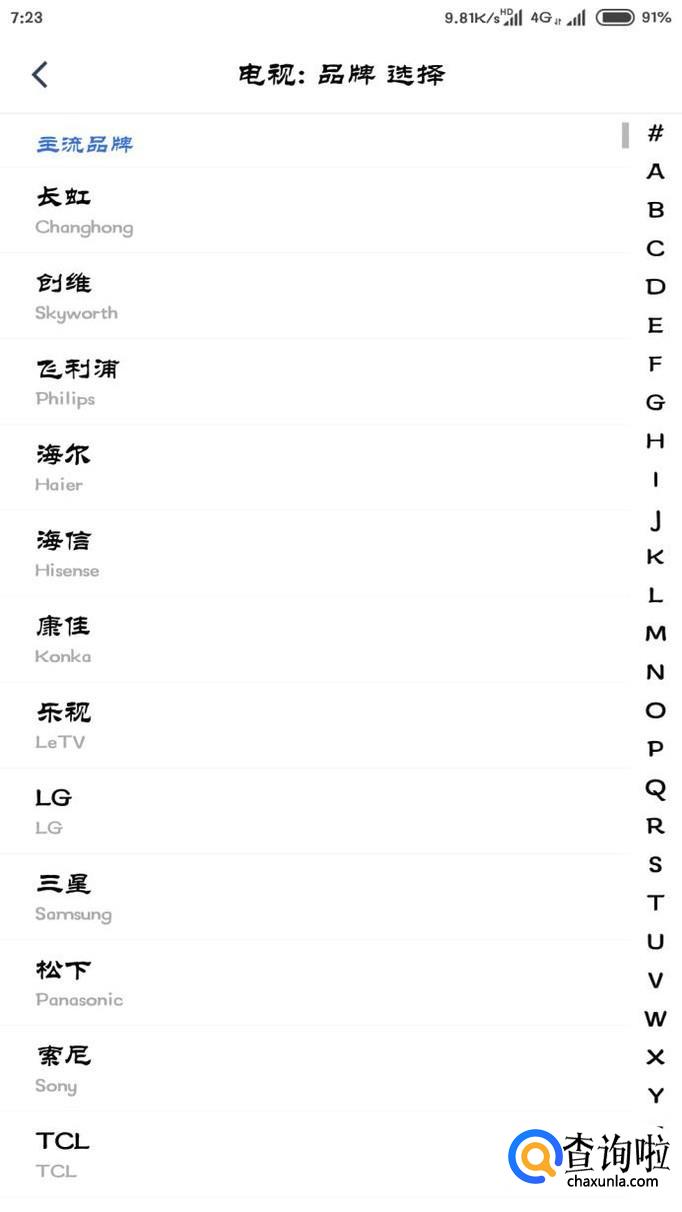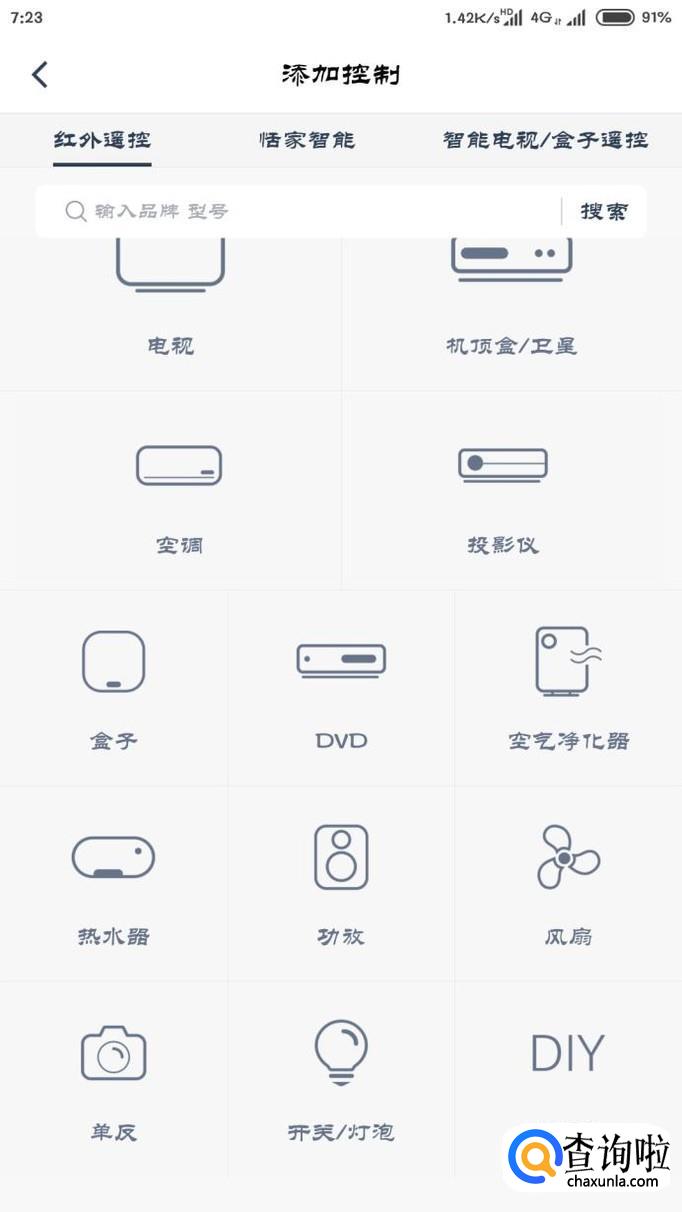 接下来点击左上角的加号,然后选择要遥控的家电的类型,也可以直接在上面的输入框里面输入家电型号。