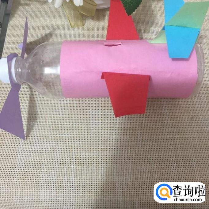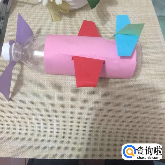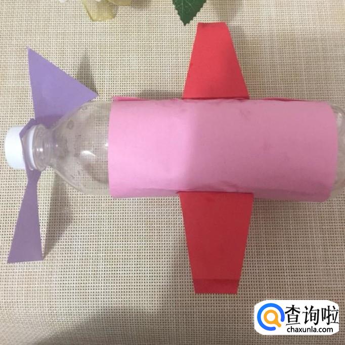 然后做出飞机模型的尾翼并粘到瓶身上,如下图所示。