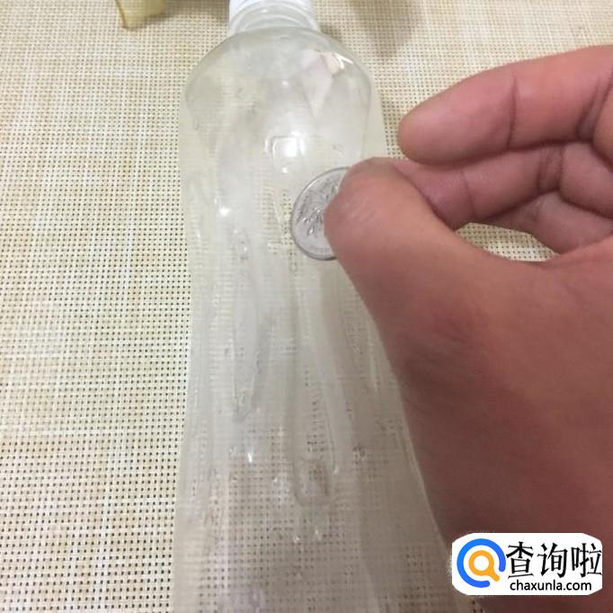 首先在矿泉水瓶上挖出一个正好能够放下硬币的口,如下图所示。