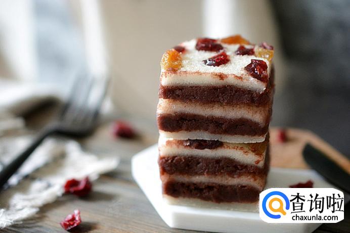 据史料记载,重阳糕又称花糕、菊糕、五色糕,制无定法,较为随意。 九月九日天明时,以片糕搭儿女头额,口中念念有词,祝愿子女百事俱高,乃古人九月作糕的本意。讲究的重阳糕要作成九层,像座宝塔,上面还作成两只小羊,以符合重阳(羊)之义。有的还在重阳糕上插一小红纸旗,并点蜡烛灯。这大概是用“点灯”、“吃糕”代替“登高”的意思,用小红纸旗代替茱萸。当今的重阳糕,仍无固定品种,各地在重阳节吃的松软糕类都称之为重阳糕。