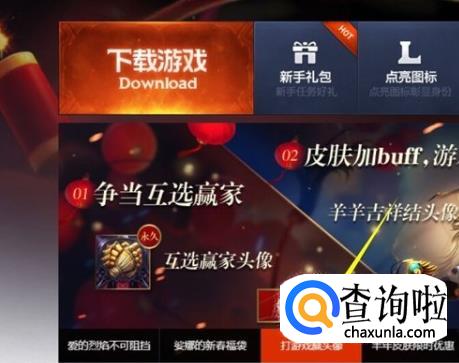 “羊羊吉祥结”头像领取方法:登陆LOL英雄联盟客户端或者通过网页登陆LOL官方网站,在其“翻页广告”宣传栏目中找到“玩游戏领头像”进入。