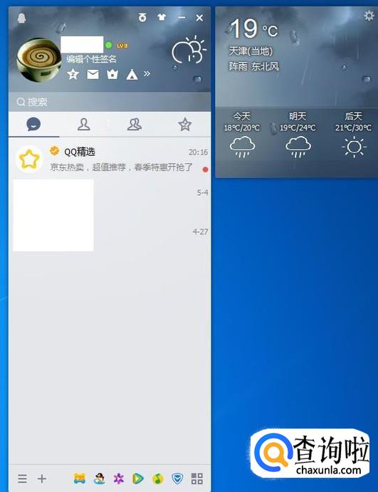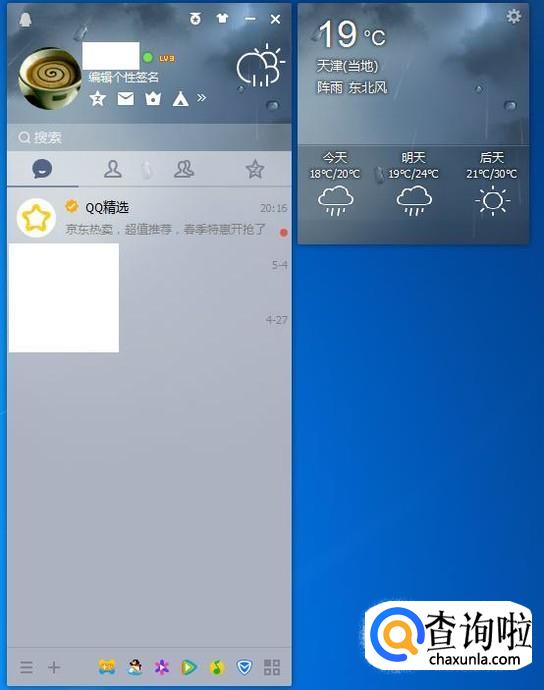 此时,会发现QQ的主界面有了变化,上部有了“天气变化”的皮肤,如图所示。
