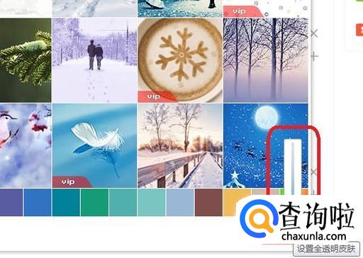 在“更改外观”界面的右下角,我们看到“设置全透明皮肤”的按钮,点击弹出滑块,上下滑动就可以设置皮肤透明度了。