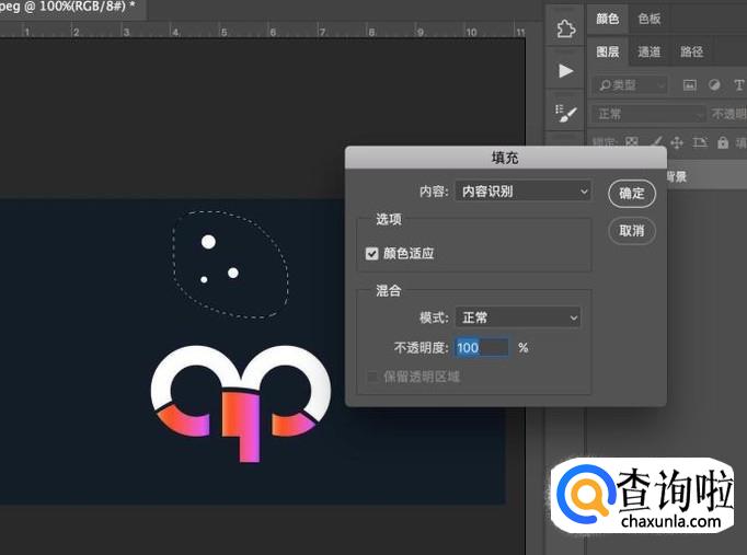 在填充面板中,选择内容识别,点击确定,即可完成操作。