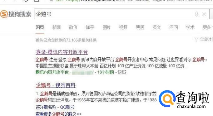 首先在搜狗浏览器中输入企鹅号并点击回车键,如下图所示。