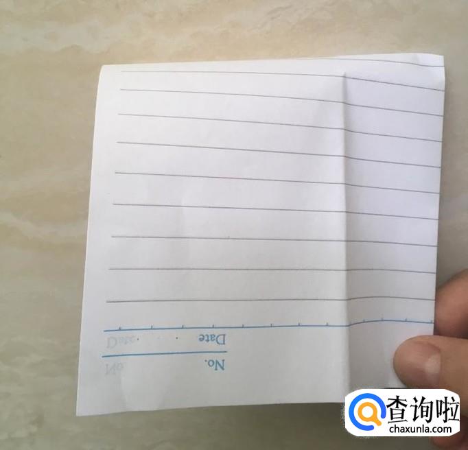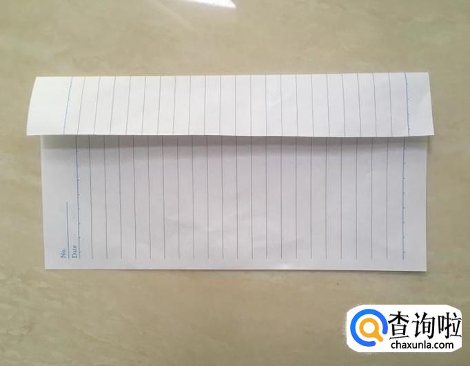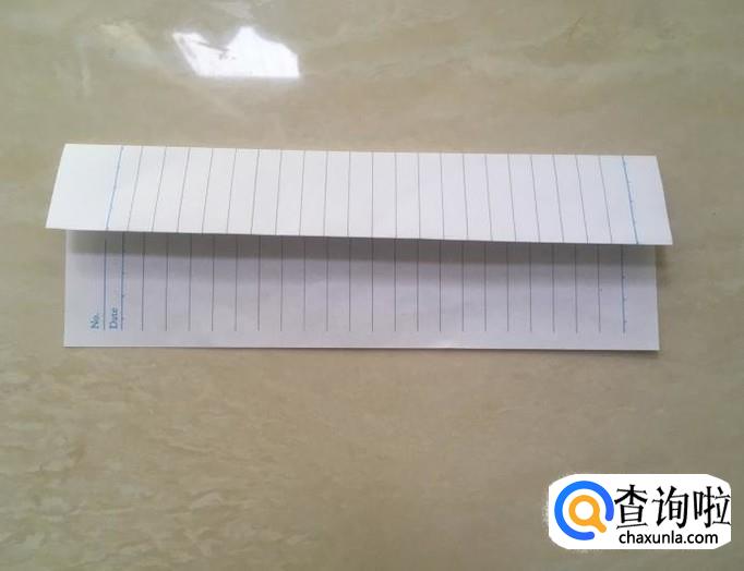 准备一张长方形纸张,沿着长的那条变,向下折大约1/4。