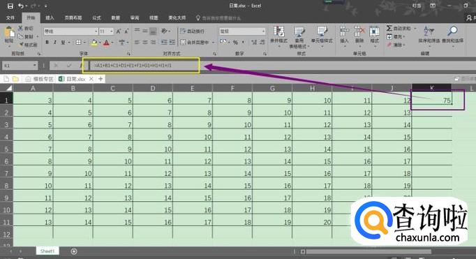 求和也可以使用自动求和公式:SUM()