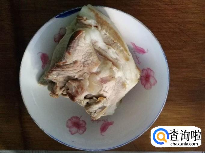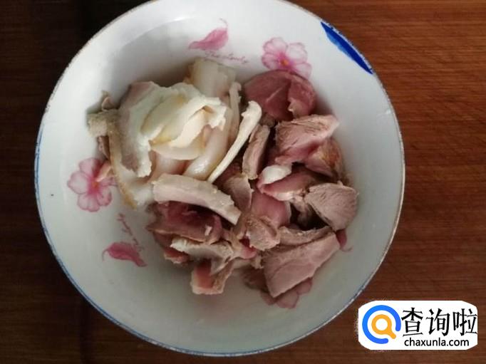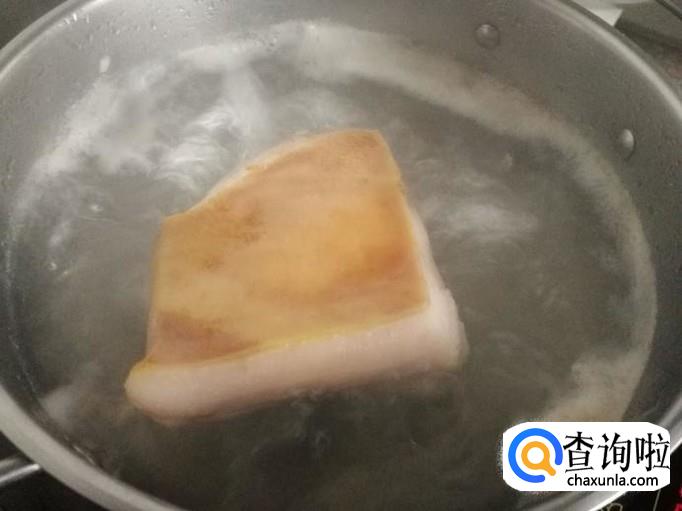 将肉放到冷水中煮熟后晾凉,切成薄片。