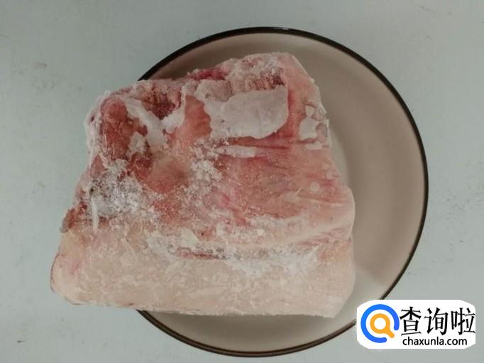 挑选有肥有瘦的二刀肉,将冻肉放置室温中解冻后,清水洗净。