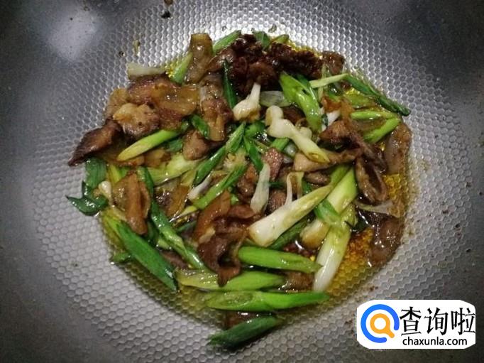 下青蒜一起翻炒,加适量盐翻炒均匀。