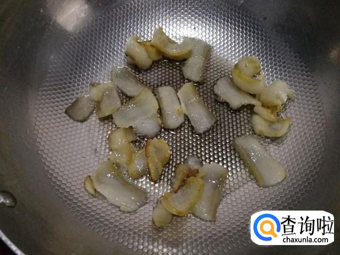 起锅烧热,下肥肉煎出油后,再加少许油后,下瘦肉一起翻炒。