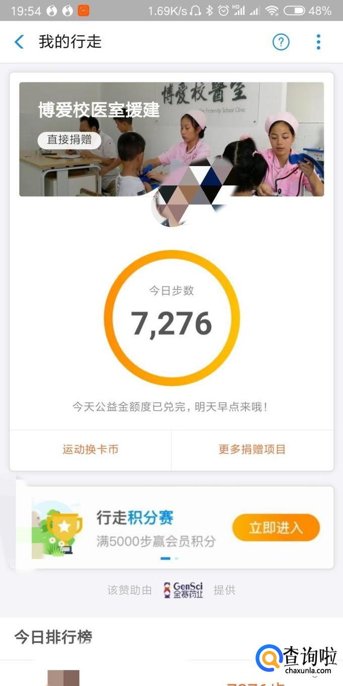 进入运动以后就可以看到当前的运动情况,你可以选择捐步或者点击下面的活动积分赛。