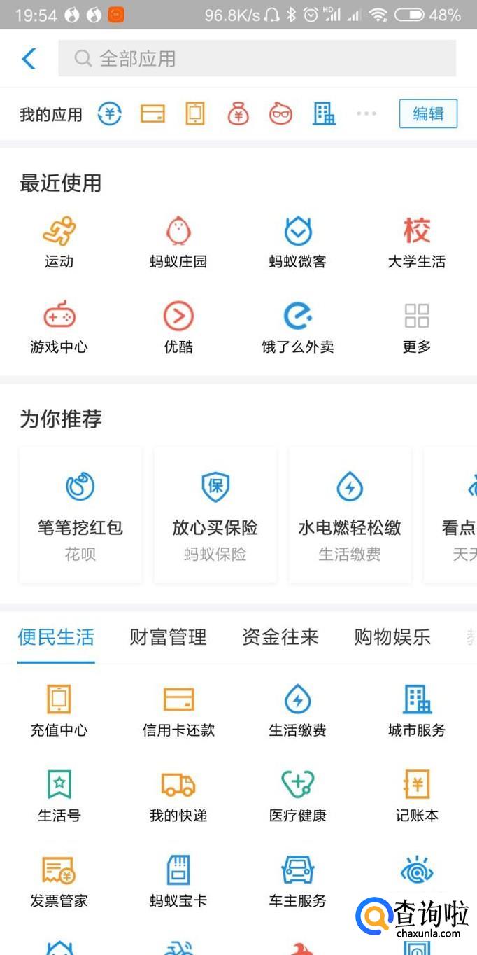 首先打开支付宝返回支付宝首页,在首页点击更多,然后选择运动,点击打开。