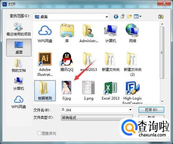 点击打开选项在弹出的打开对话框内找到我们的图片素材,如图所示: