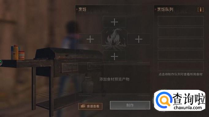 靠近烹饪台,然后点击烹饪,就会出现烹饪界面,点击左下角的食谱查看就可以看到所有被创造出来的食谱啦。