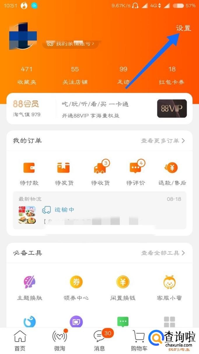 然后在个人栏点击右上角的“设置”,进入设置页面。