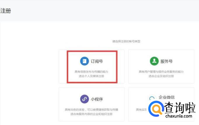 然后选择注册账号的类型,个人和媒体注册都是选择订阅号。