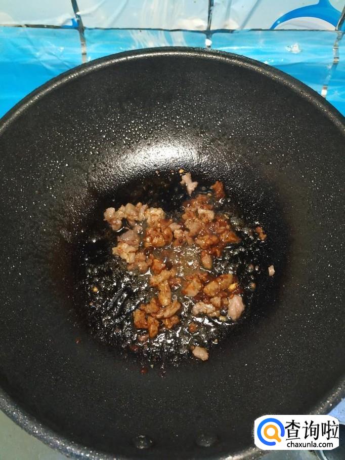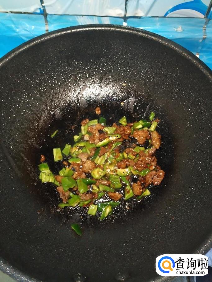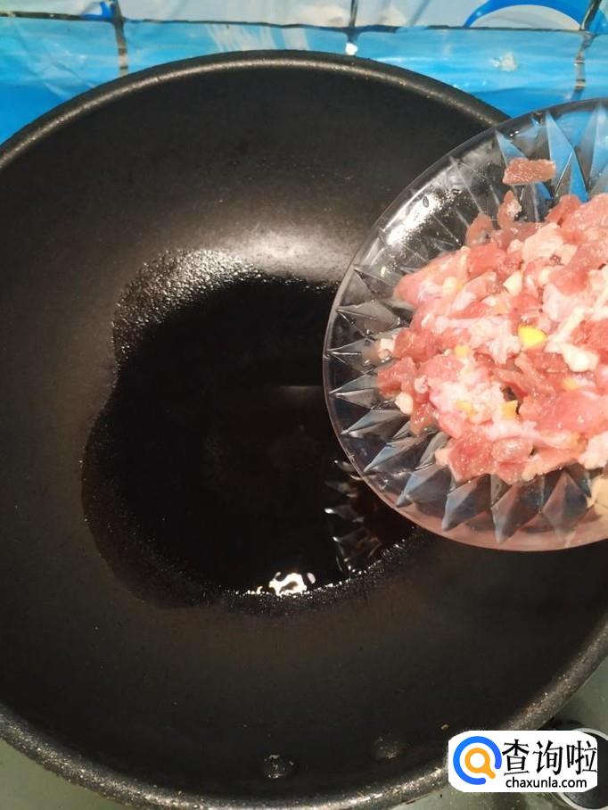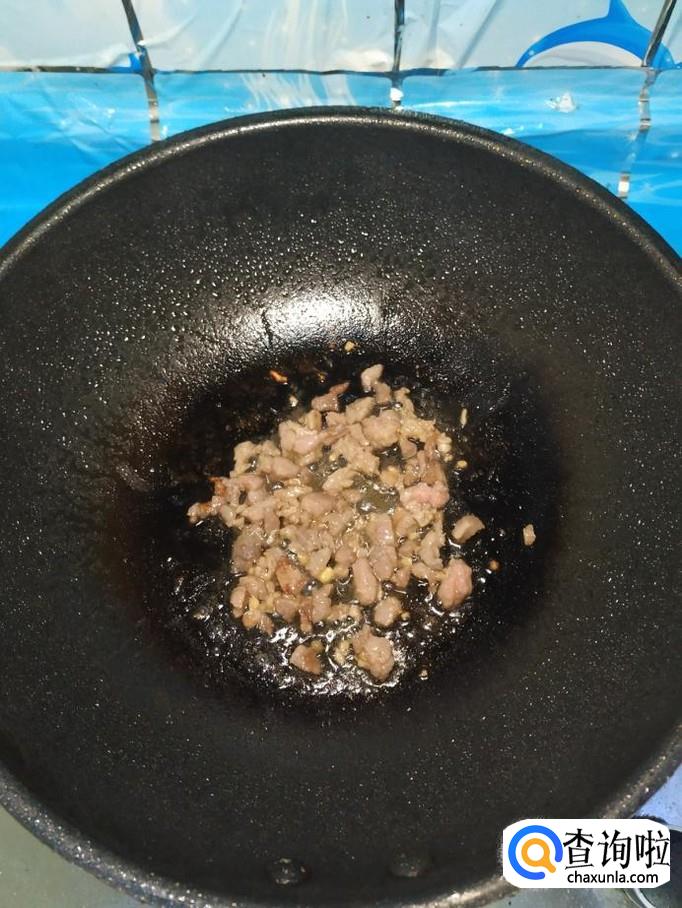炒锅中放入适量油,油热后,将牛肉放入锅中炒香,切碎的牛肉是非常容易熟的。