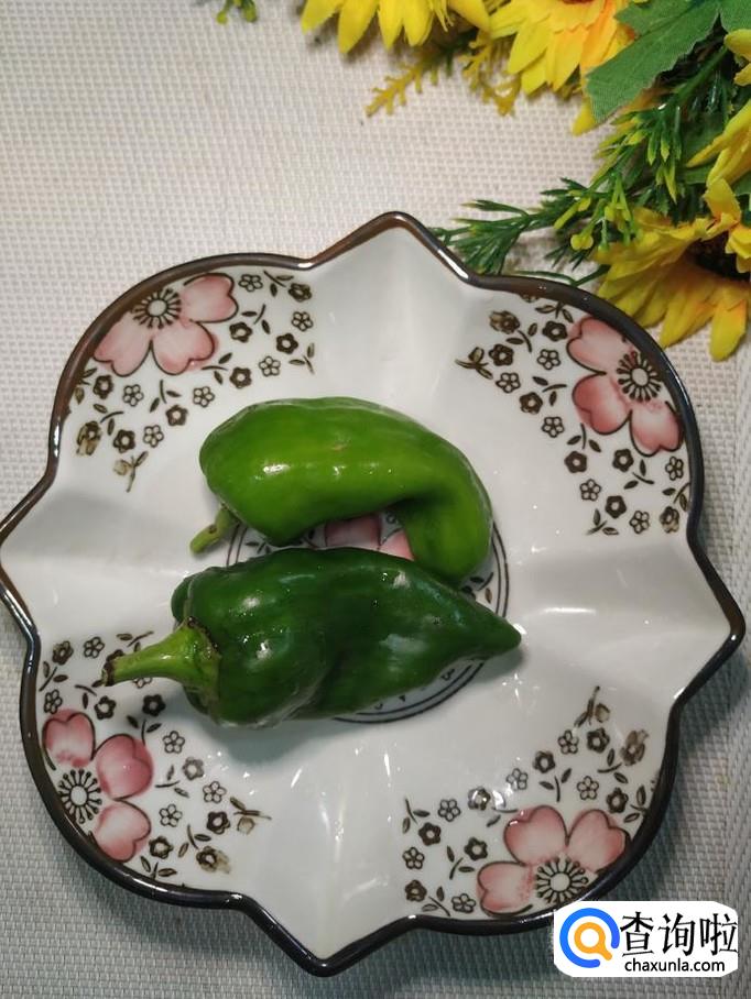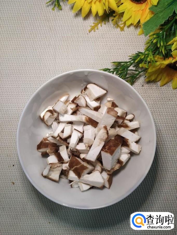 准备适量青椒,洗净后切成丁,再准备两个新鲜的香菇,洗净后也切成丁备用。