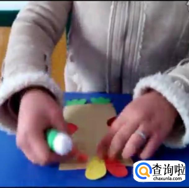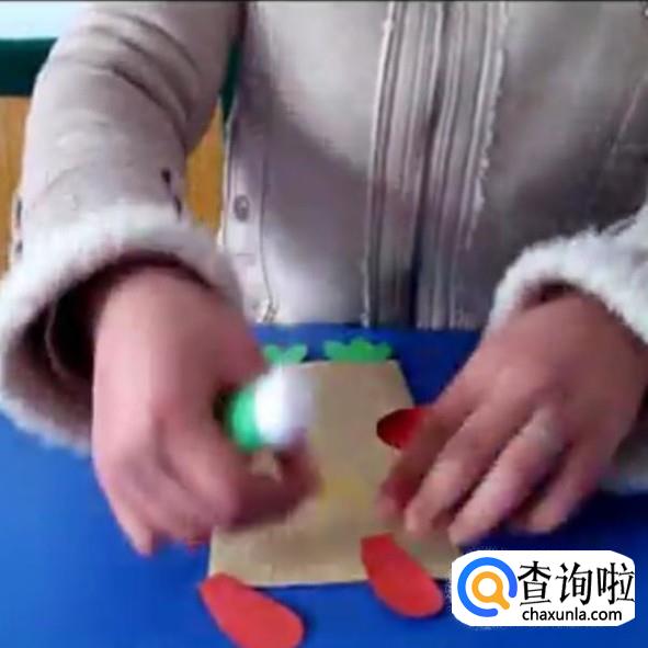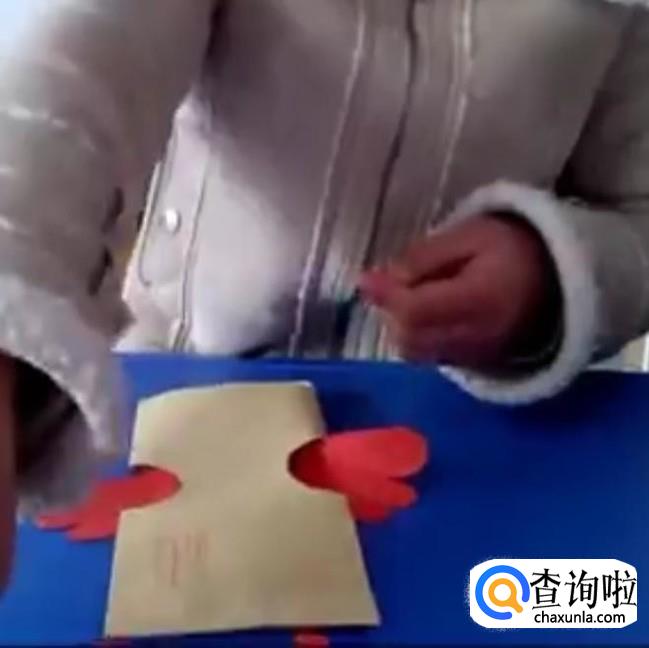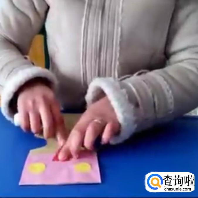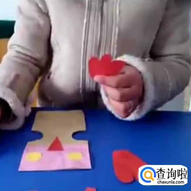 剪一个三角形当做玩偶的鼻子,粘在信封上。