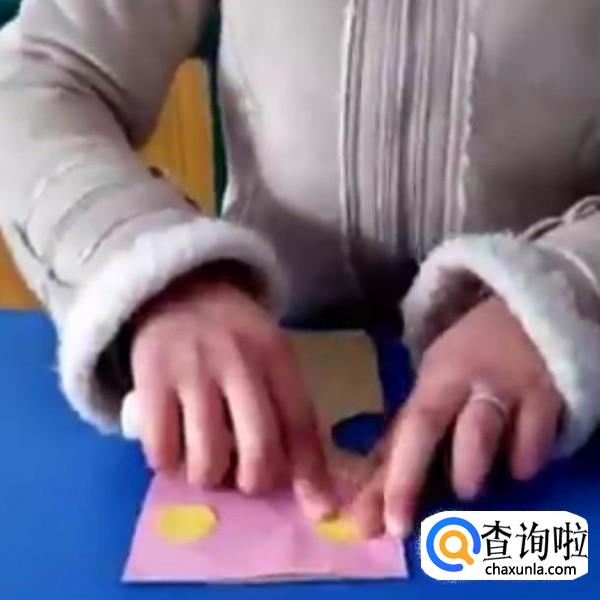 将剪好的两个圆作为玩偶的眼睛粘在上面,如图所示。