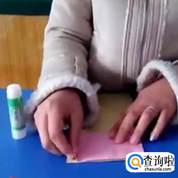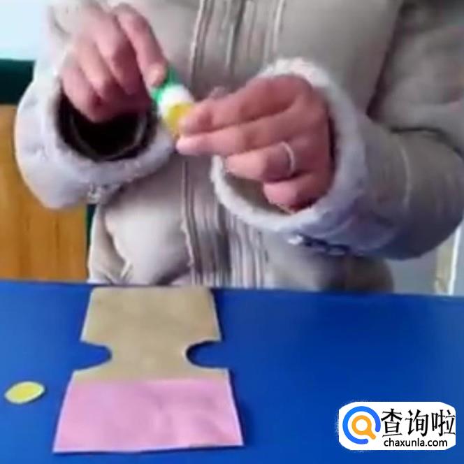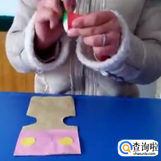 首先准备一个信封,分别把两边剪开,将长方形纸片用胶棒粘在信封上部,作为玩偶的头。