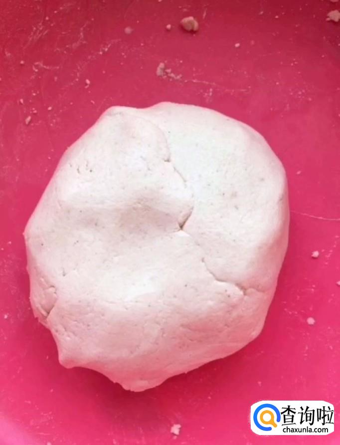 然后我们加入适量的温水,搅拌一下,活成面团,醒发一夜