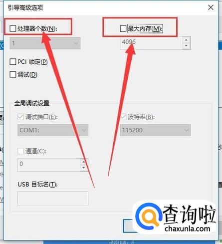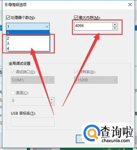 进入之后,更改选择处理器个数,提升最大内存,点击“确定”即可,如图所示。