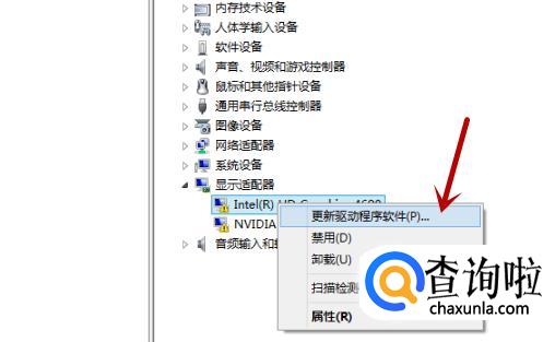 接着在跳出的选项中点击“更新驱动程序软件”,进入下一个界面。