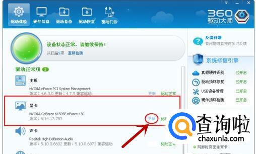 进入“驱动大师”界面,找到“显卡”,点击更新就可以啦。