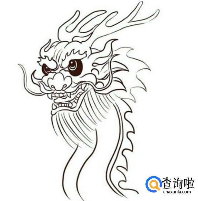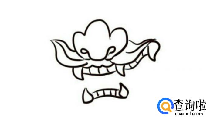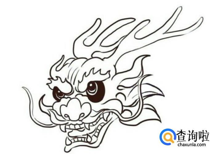 接着画出龙角和龙须,这样一来龙头就初见形状了。