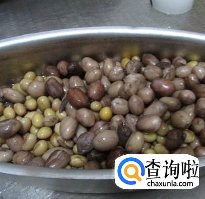 将泡发的黄豆和花生煮熟,如图所示。